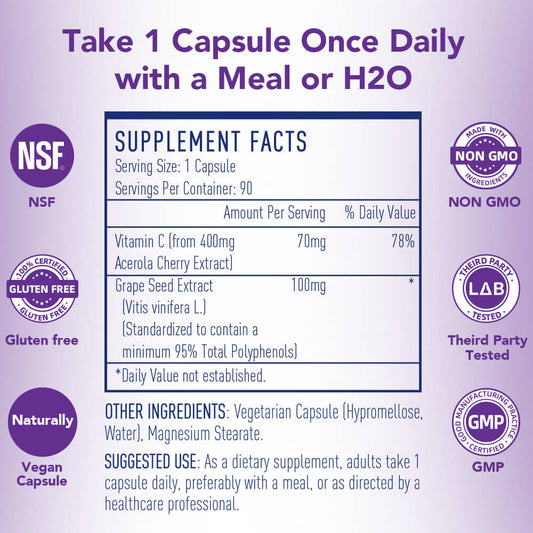 Misspep Grape Seed Extract 100 mg with Acerola Cherries for Immune HealthRegular price $23.50 USDRegular priceUnit price per-